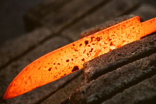 Бланки могут иметь незначительные поводки, устраняемые шлифованием. Заготовки клинков, предназначенные для сквозного монтажа, требуют высокого отпуска окончания хвостовика (от трех до пяти нагревов горелкой до 750-800°С) для нарезания резьбы или расклепывания.