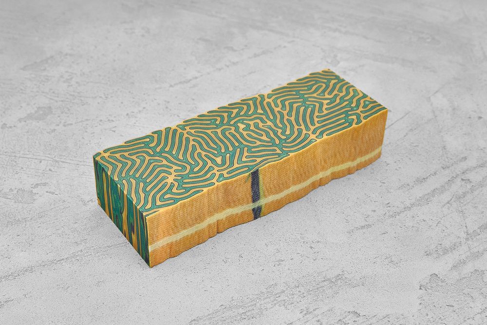 Авторская микарта CrazyFiber - уникальный материал на основе ткани и эпоксидных смол. Каждая складка собирается вручную, поэтому любой брусок имеет свой неповторимый рисунок и отличаться от бруска, приведенного на фотографии. Размеры и вес также могут незначительно отличаться от указанных в описании.